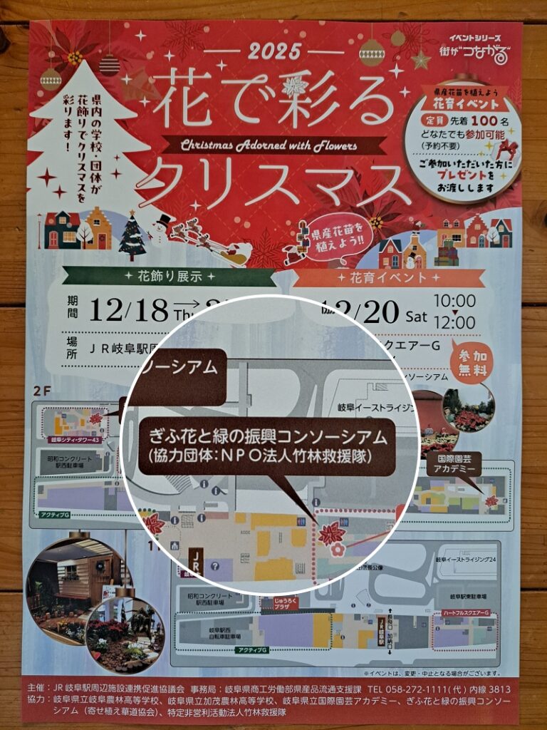 NPO法人竹林救援隊から竹花壇、竹明かりを展示します